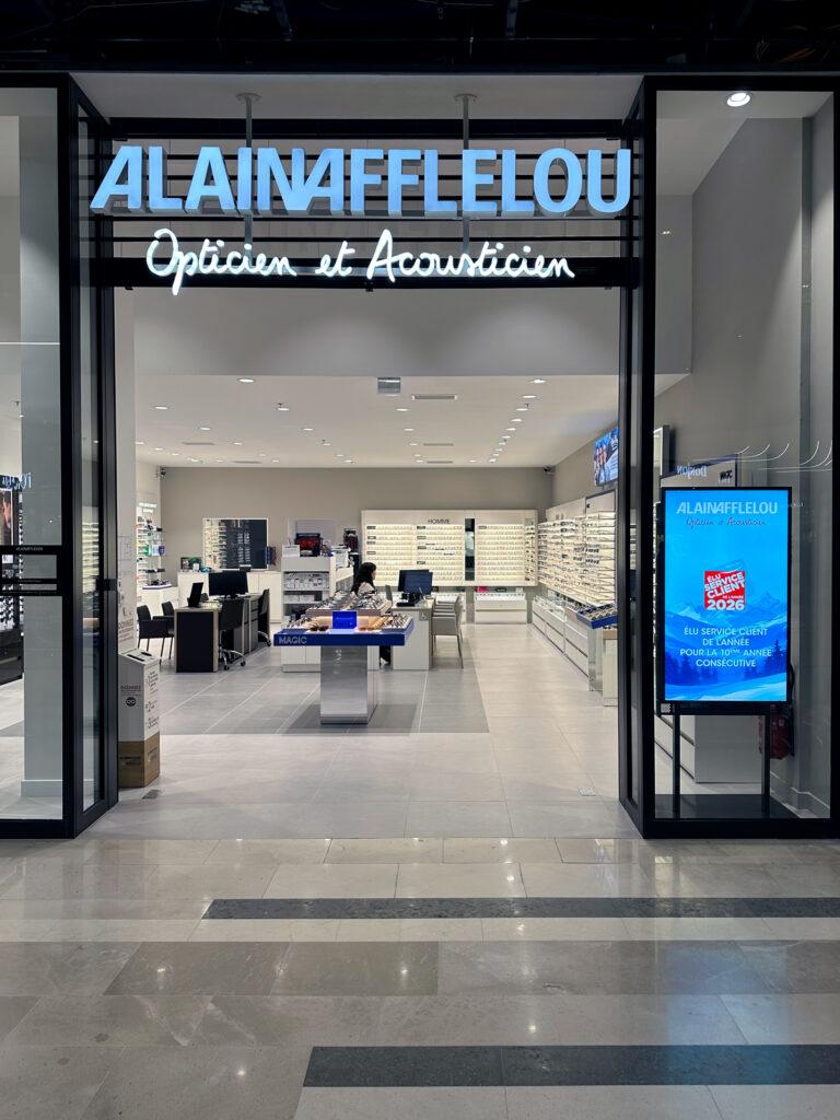 Conformément au nouveau concept d’Alain Afflelou, la boutique intègre une offre complète d’opticien et acousticien.